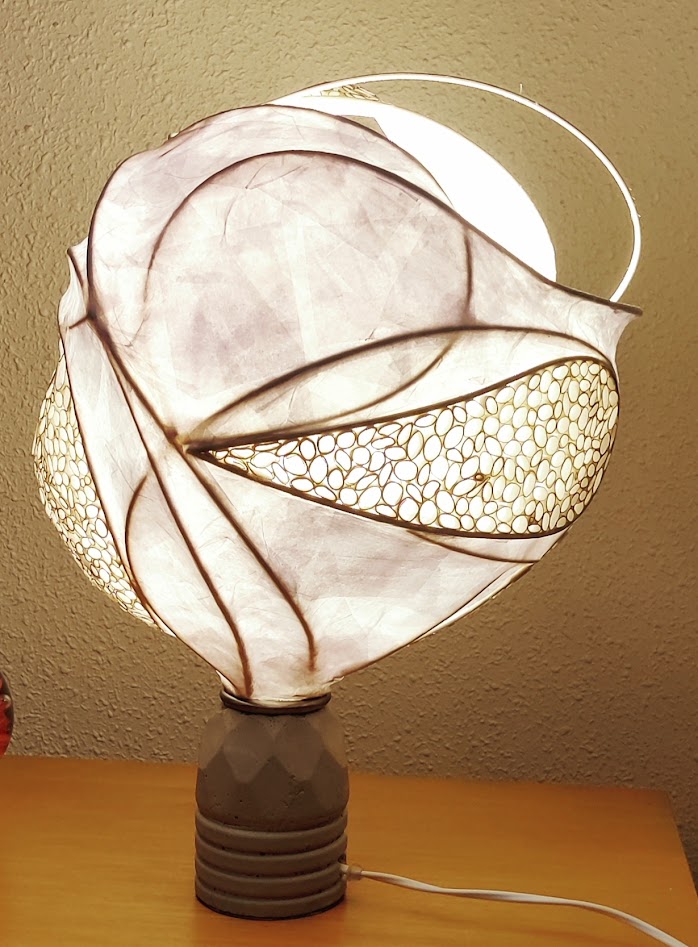 Trabajo con fibras, esparto, cerámica y papel, explorando la luz y las sombras que atraviesan mis piezas: murales, lámparas y esculturas